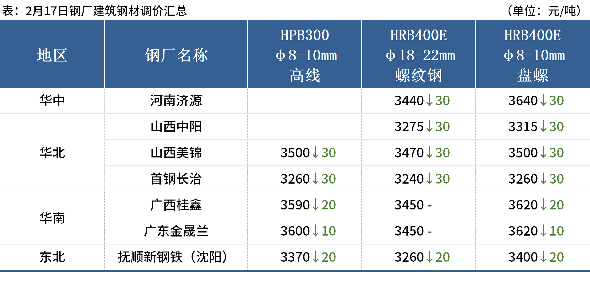 ◎2月17日,76家獨立電弧爐建筑鋼材鋼廠平均成本為3467元/噸,環(huán)比上周五下降8元/噸,平均利潤虧損79元/噸,谷電利潤為38元/噸。