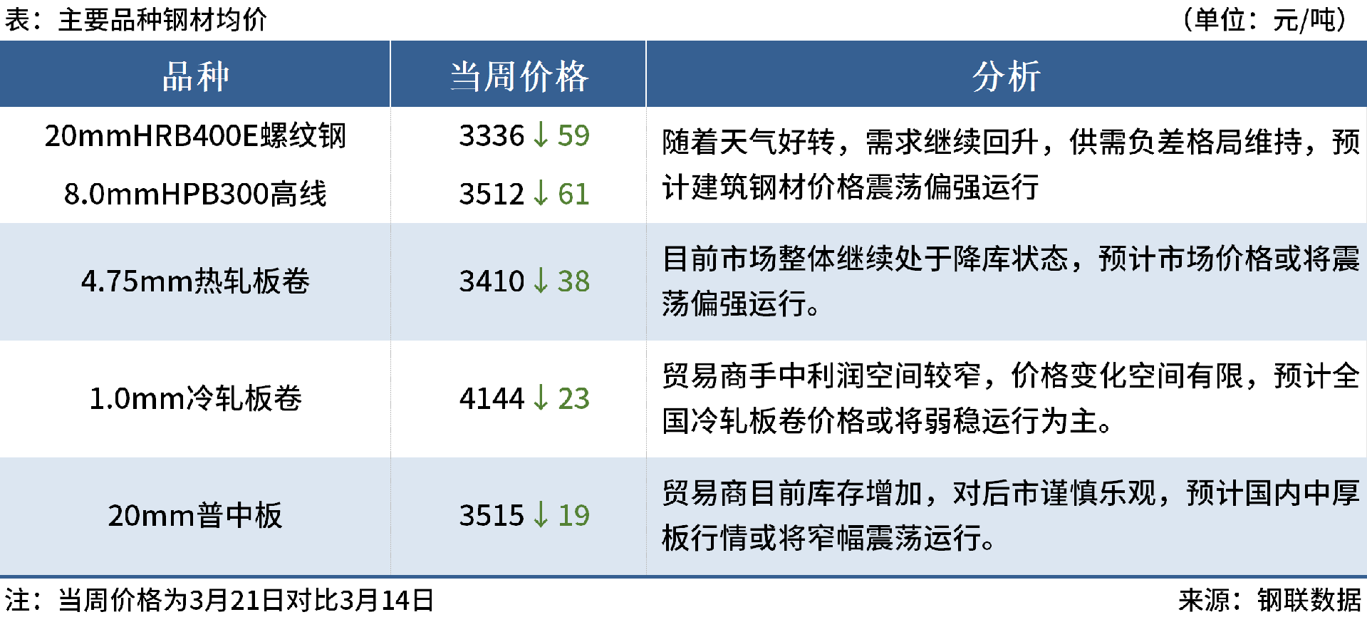 ◎3月21日,全國主港鐵礦石成交74.80萬噸,環(huán)比減32.2%;237家主流貿(mào)易商建筑鋼材成交9.98萬噸,環(huán)比減23%。