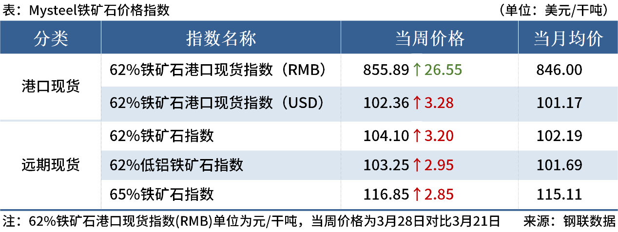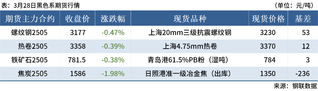 ◎3月28日,全國主港鐵礦石成交129.93萬噸,環(huán)比增54.1%;237家主流貿(mào)易商建筑鋼材成交10.41萬噸,環(huán)比增5.7%。