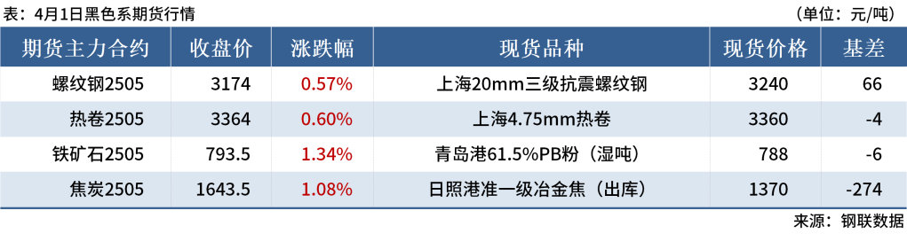 ◎4月1日,全國(guó)主港鐵礦石成交93.40萬(wàn)噸,環(huán)比減5.7%;237家主流貿(mào)易商建筑鋼材成交15.32萬(wàn)噸,環(huán)比增46.7%。