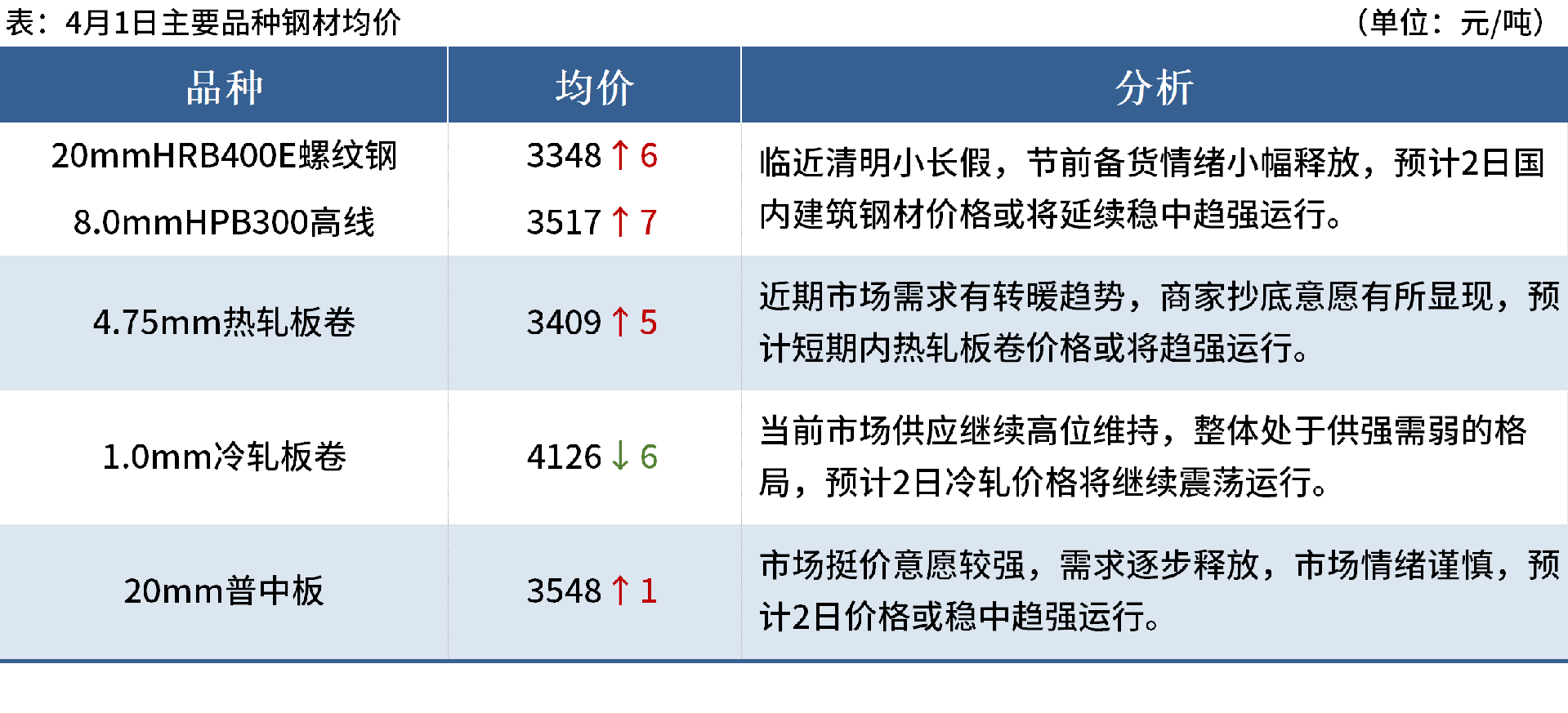 ◎上海鋼聯(lián)鋼材首席分析師汪建華預(yù)計(jì),4月鋼鐵市場(chǎng),在近期一系列國(guó)內(nèi)外利空政策的影響下,市場(chǎng)仍有進(jìn)一步探底的表現(xiàn),但隨著市場(chǎng)利空的階段性兌現(xiàn),疊加春季需求的全面釋放,部分品種的基本面或迎來(lái)進(jìn)一步的階段性向好。詳情>>