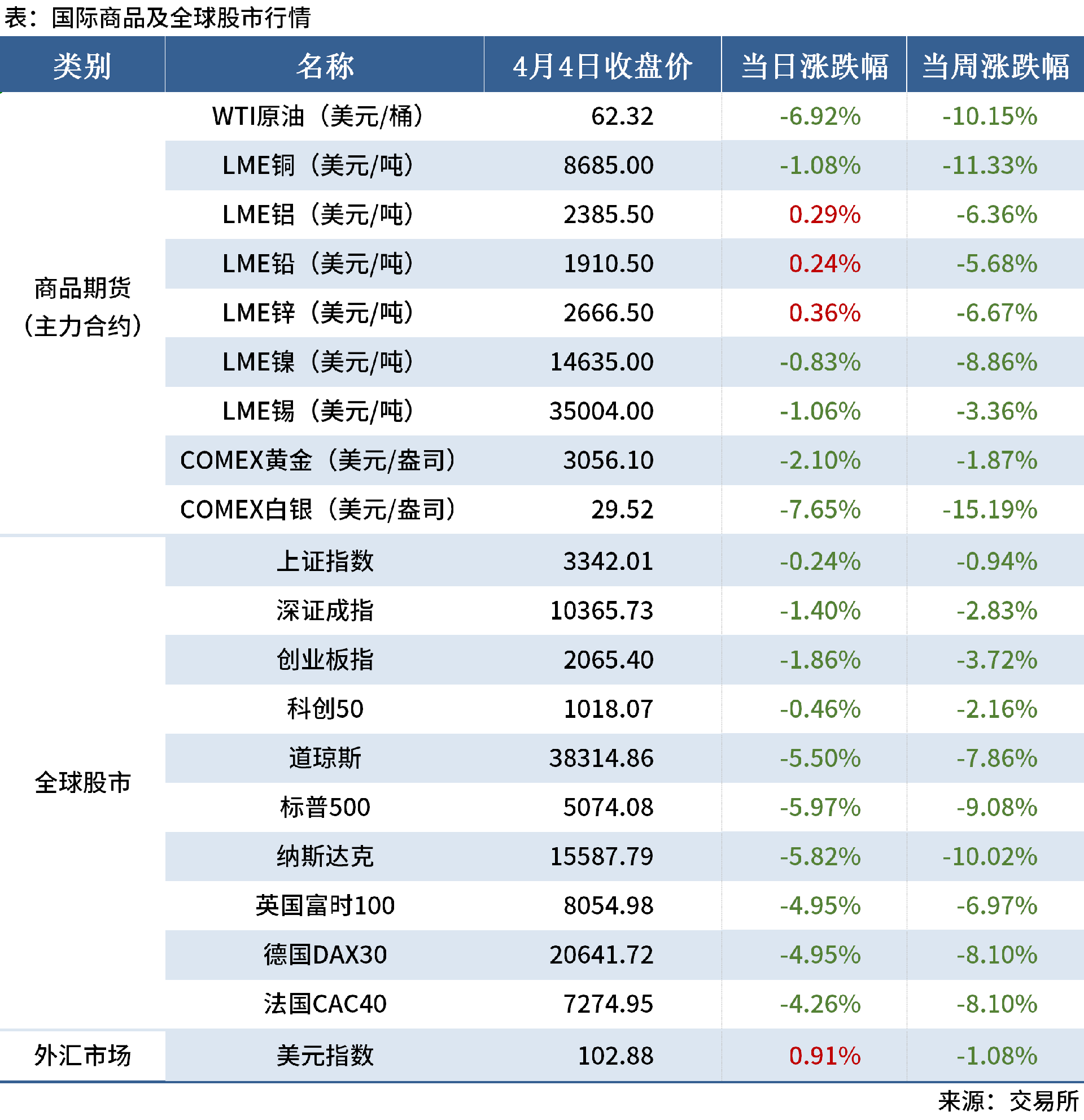 宏觀資訊:中方對(duì)美采取多項(xiàng)反制措施;我國(guó)將多措并舉切實(shí)減輕企業(yè)負(fù)擔(dān);住建部發(fā)布國(guó)家標(biāo)準(zhǔn)《住宅項(xiàng)目規(guī)范》;3月中國(guó)制造業(yè)PMI為50.5%,比上月上升0.3個(gè)百分點(diǎn);美國(guó)宣布征收所謂“對(duì)等關(guān)稅”;美國(guó)3月非農(nóng)就業(yè)人數(shù)增加22.8萬人,遠(yuǎn)超預(yù)期。