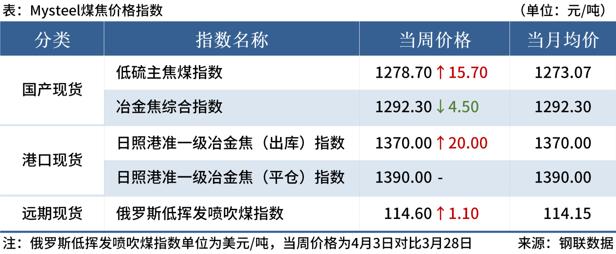 ◎ 上周,全國(guó)230家獨(dú)立焦企樣本產(chǎn)能利用率為72.60%,增1.01%;焦炭日均產(chǎn)量51.88萬(wàn)噸,增0.73萬(wàn)噸,焦炭庫(kù)存66.37萬(wàn)噸,減3.32萬(wàn)噸,煉焦煤總庫(kù)存803.92萬(wàn)噸,增74.31萬(wàn)噸。