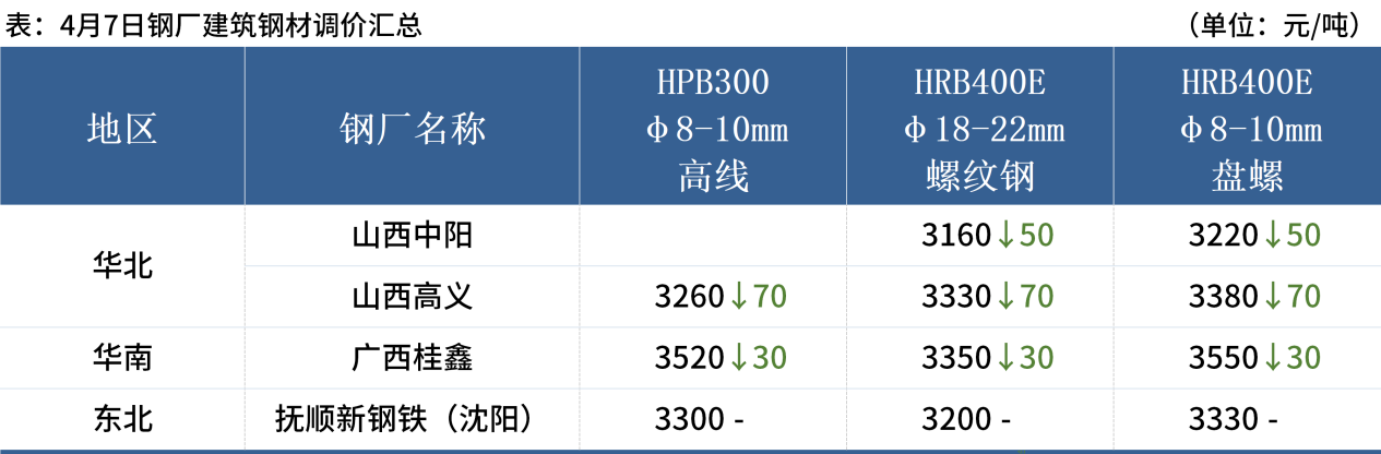 ◎ 4月7日,唐山遷安普方坯資源出廠含稅累計(jì)下調(diào)50,報(bào)2970元/噸。