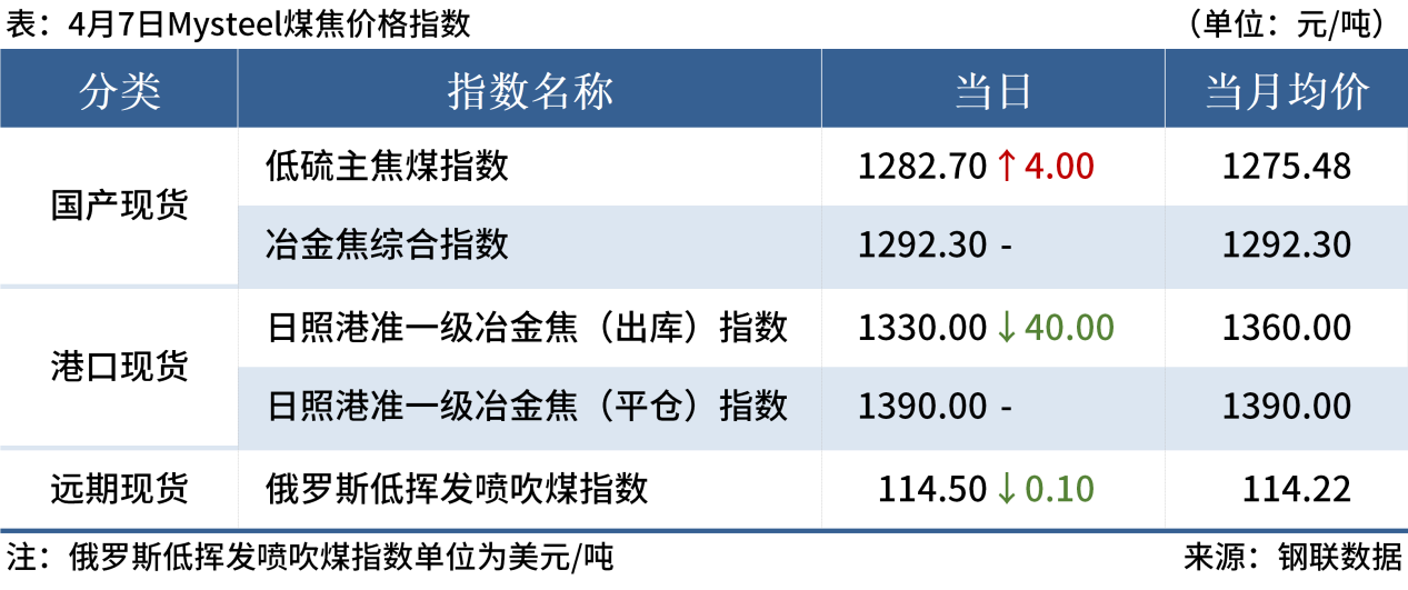 ◎ 4月7日焦炭市場(chǎng)價(jià)格偏強(qiáng)運(yùn)行,多地焦企發(fā)函對(duì)焦炭?jī)r(jià)格進(jìn)行第一輪提漲,濕熄焦上調(diào)50元/噸、干熄焦上調(diào)55元/噸,自4月9日0時(shí)起執(zhí)行,主流鋼廠暫無(wú)回應(yīng)。