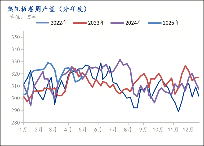 圖1:熱軋板卷周產(chǎn)量(分年度)