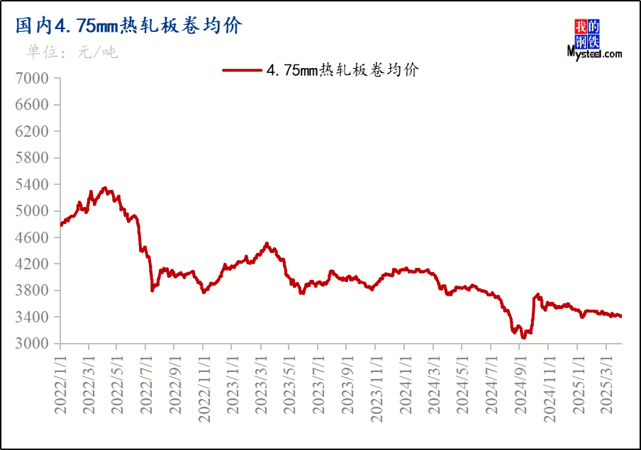 圖5:國內(nèi)4.75mm熱軋板卷均價(jià)走勢圖