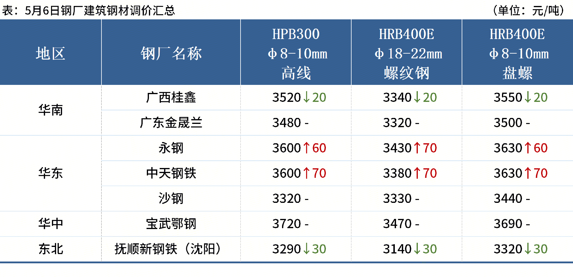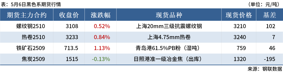 ◎5月6日,全國主港鐵礦石成交77.90萬噸,環(huán)比增194%;237家主流貿(mào)易商建筑鋼材成交10.73萬噸,環(huán)比增12%。