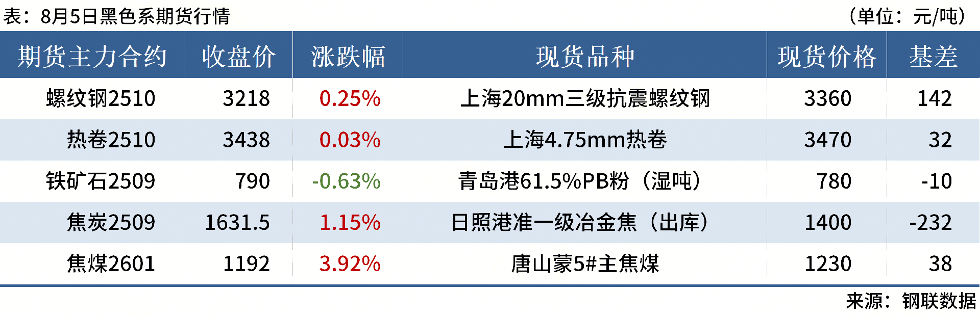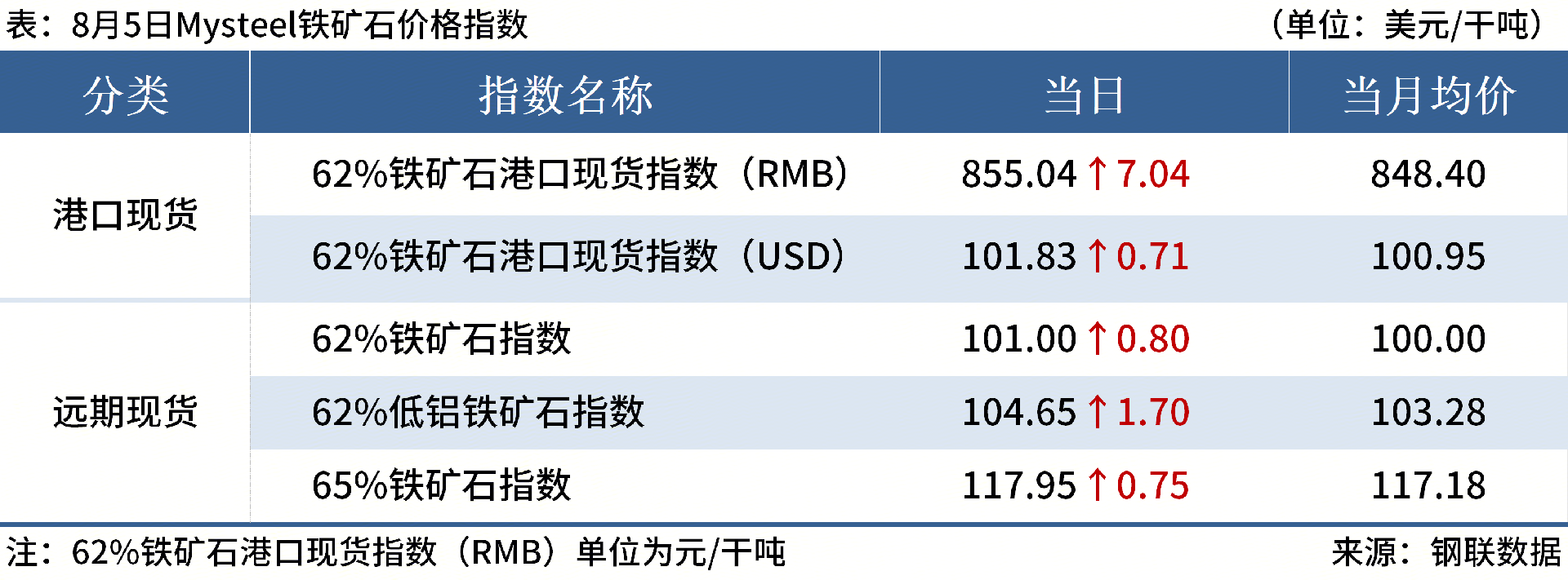 ◎ 8月5日,全國主港鐵礦石成交100.70萬噸,環(huán)比增10.4%;237家主流貿(mào)易商建筑鋼材成交11.01萬噸,環(huán)比持平。