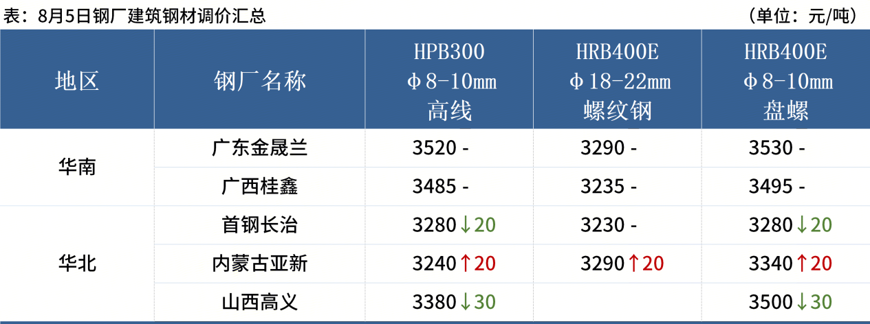◎ 8月5日,衢州元立對中棒軋線進行檢修,為期5天,日均影響棒材產(chǎn)量0.25萬噸,預(yù)計影響中棒產(chǎn)量約1.2萬噸。