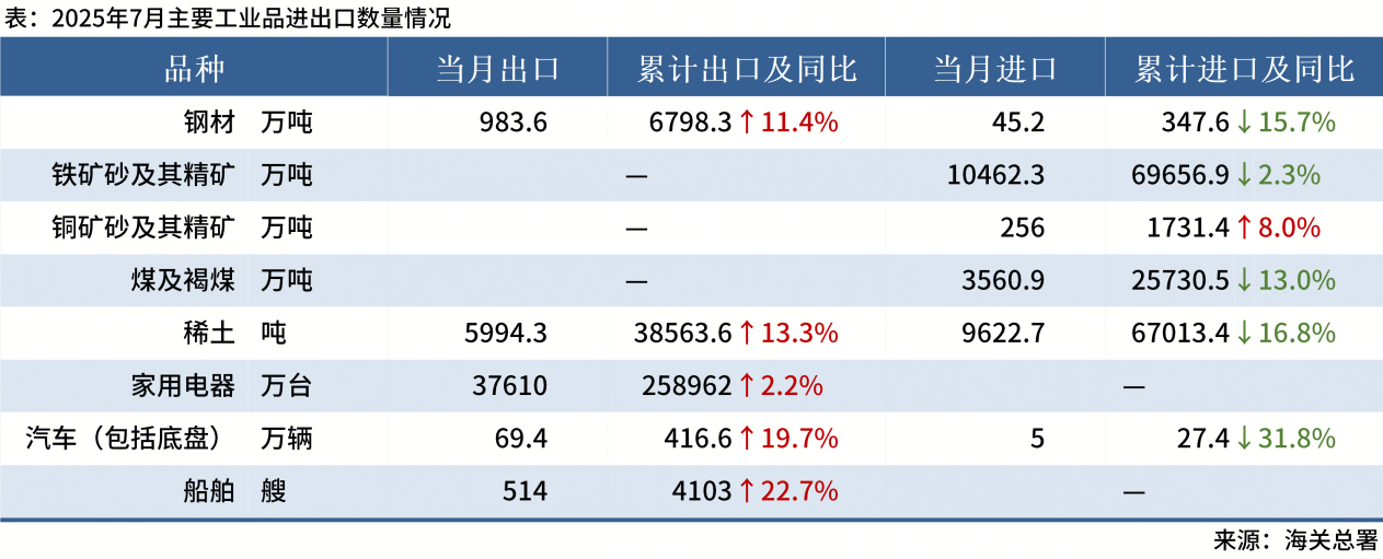 ◎ 海關(guān)總署:7月中國出口鋼材983.6萬噸,1-7月累計(jì)出口鋼材6798.3萬噸,同比增長11.4%。其他主要品種如下: