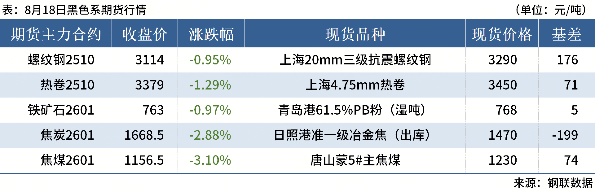 ◎ 8月19日,全國主港鐵礦石成交115.00萬噸,環(huán)比增14.7%;237家主流貿(mào)易商建筑鋼材成交9.09萬噸,環(huán)比減3%。
